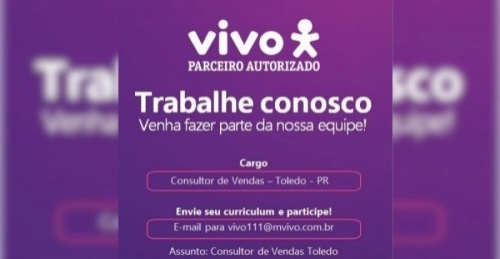 Loja Vivo de Toledo contrata Consultor(a) de Vendas! Envie o seu currículo aqui