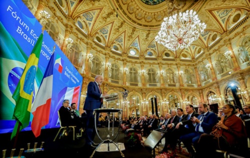 Ele participou da sessão de encerramento do Fórum Econômico Brasil-França, encontro que reuniu autoridades e líderes empresariais de ambos os países. Lula destacou as potencialidades dos dois países para investimentos nos setores da transição energética, indústrias da saúde e de defesa e no agronegócio.