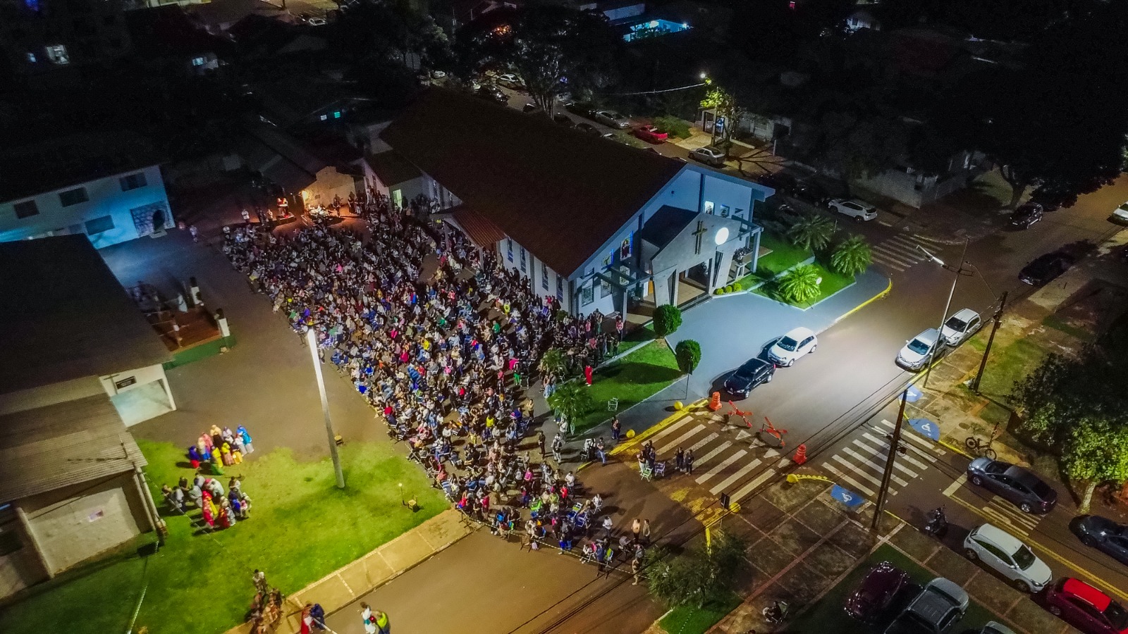 Na noite da última sexta-feira, 18, a tradicional encenação da Via Sacra realizada pela Paróquia São Francisco de Assis, no Jardim Coopagro, em Toledo, emocionou a comunidade e reuniu cerca de 1.375 pessoas, segundo estimativa feita a partir de imagem aérea analisada com inteligência artificial. O pátio da Igreja Matriz ficou completamente lotado, recebendo fiéis não só de Toledo, mas também de cidades vizinhas como Ouro Verde do Oeste-PR e Cascavel-PR.