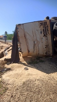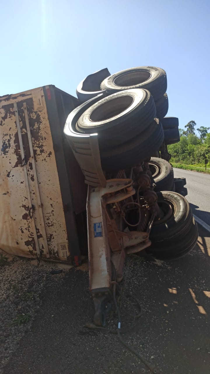 Na manhã desta sexta-feira (26), as partes da carreta que não tombaram foram removidas do local. O condutor, apesar do incidente, saiu ileso e segue aguardando a chegada de um guincho para a retirada do reboque tombado.