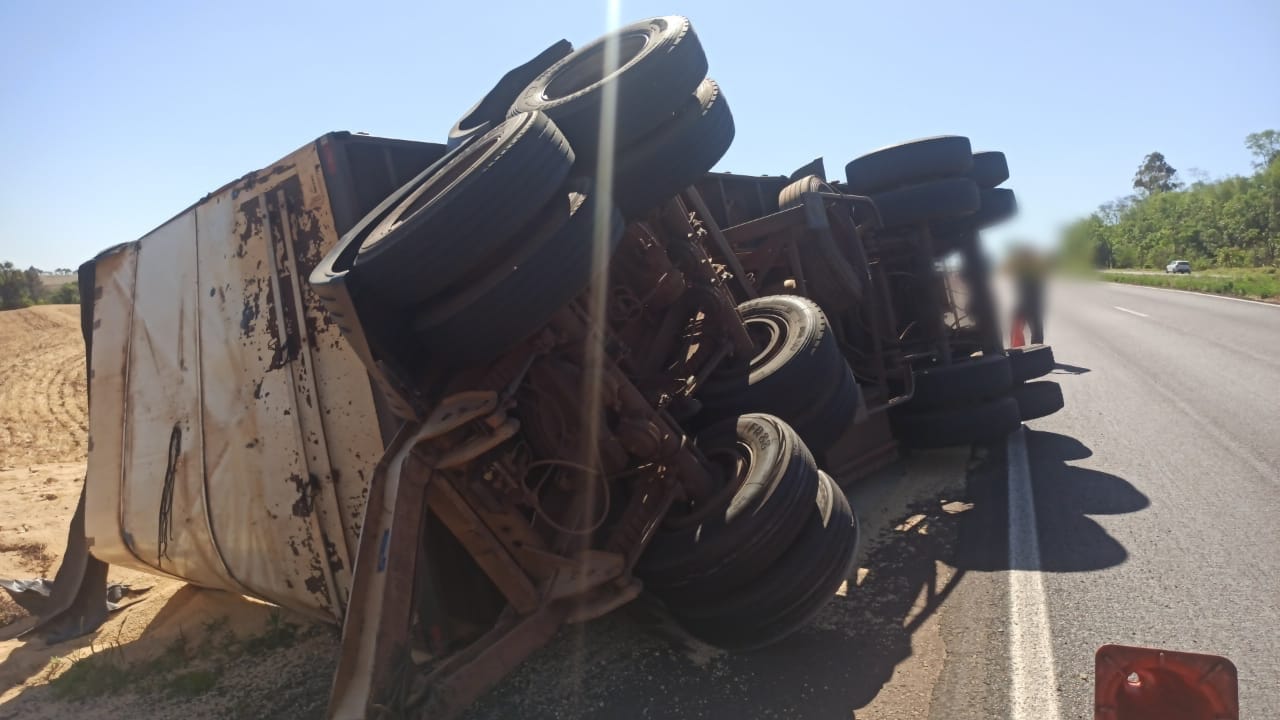 Manobra de emergência causa tombamento de reboque de carreta na BR-163, em Toledo
