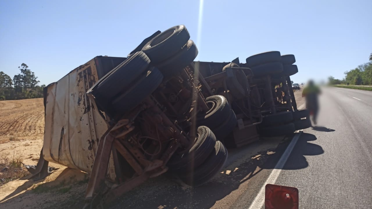 Uma manobra para evitar colisão terminou com o tombamento parcial de uma carreta na rodovia BR-163, em Toledo, na noite da quinta-feira, 25. O segundo reboque do veículo saiu da pista e tombou no acostamento, sem atingir a via principal.