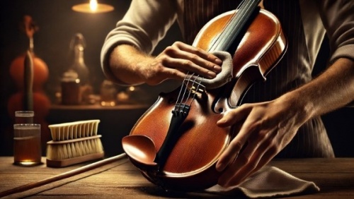 Comece removendo a poeira superficial com um pano seco e macio. Em seguida, aplique um produto específico para instrumentos musicais, espalhando delicadamente sobre as superfícies externas sem exercer muita força.