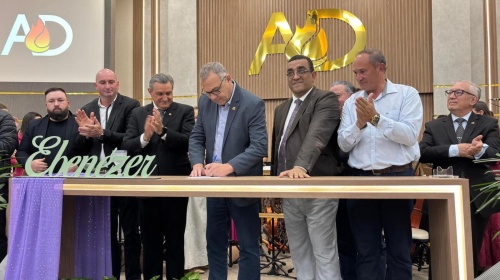 No último sábado (6), o prefeito Mario Costenaro esteve na sede da Assembleia de Deus em Toledo, onde se reuniu com pastores das mais diferentes congregações evangélicas para sancionar a lei que inclui a Marcha para Jesus no calendário oficial de eventos do município. “Este é um reconhecimento a um setor importante da sociedade. O Estado é laico, porém tenho minhas convicções cristãs e os nossos valores são de Deus. E é isso que nos rege aqui em Toledo”, ressalta o gestor.