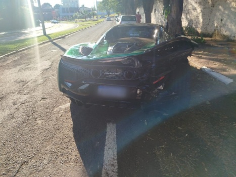 Uma McLaren avaliada em cerca de R$ 3 milhões foi atingida na traseira por um Chevrolet Corsa na manhã desta quinta-feira (21), no Jardim La Salle, em Toledo. Após a colisão, o veículo popular ainda subiu na calçada e bateu contra uma árvore.