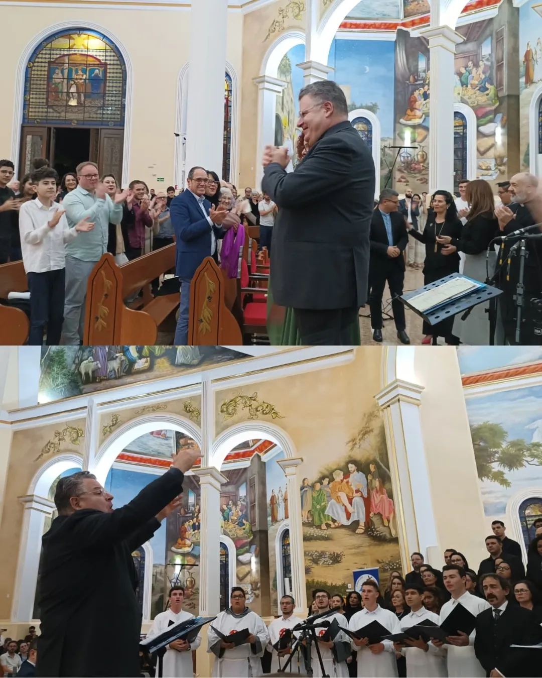 A cidade de Toledo foi palco, na última sexta-feira, dia 01º, de um evento memorável que uniu fé, música sacra e formação acadêmica, com a presença especial de Monsenhor Marcos Pavan, regente da Capela Musical Pontifícia Sistina, o coro responsável pelas celebrações litúrgicas do Papa. A atividade integrou a programação comemorativa pelos 45 anos do curso de Filosofia da Universidade Estadual do Oeste do Paraná (Unioeste) e reuniu mais 1 de mil pessoas na Paróquia Menino Deus.