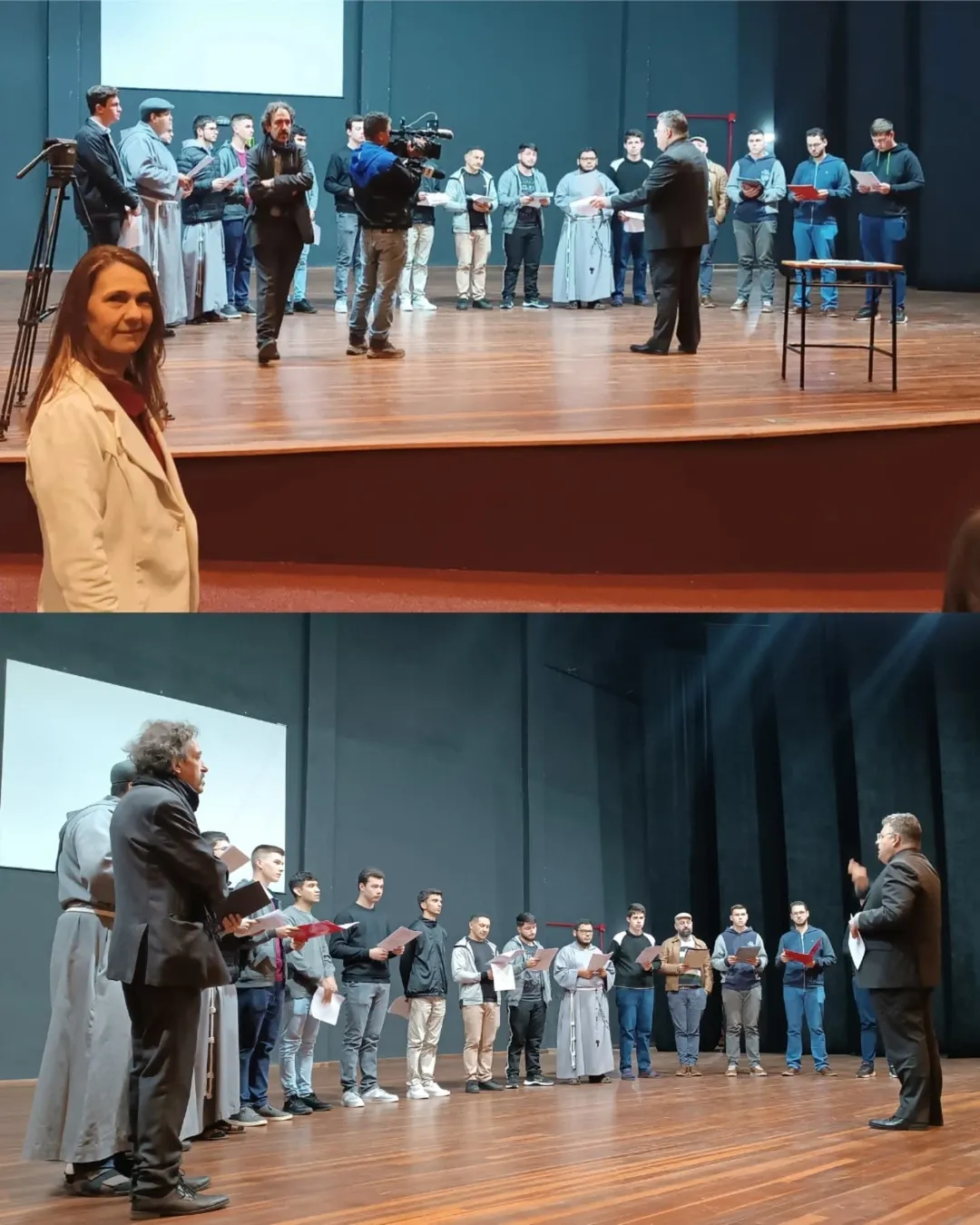 A programação também incluiu uma masterclass exclusiva com Monsenhor Pavan, oferecida ao Projeto de Extensão “Vox Viva”. Na atividade, seminaristas e integrantes do grupo aprofundaram os seus conhecimentos sobre técnicas vocais e a tradição do canto gregoriano, em uma vivência formativa intensa e enriquecedora.