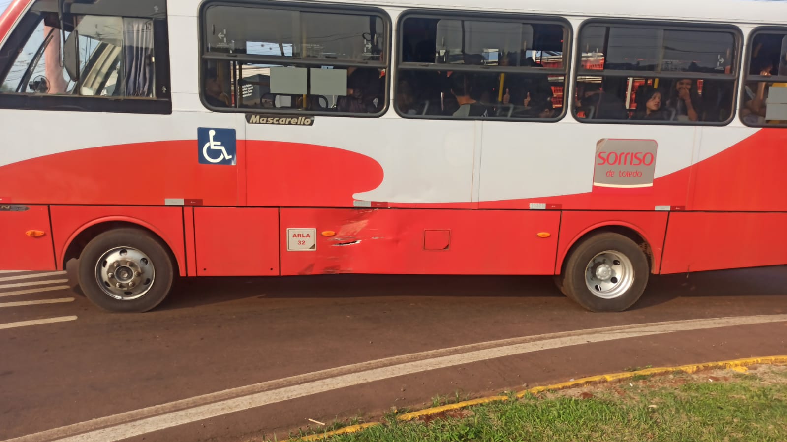 A colisão ocorreu quando o ônibus, que trafegava pela avenida, fez uma conversão à esquerda para acessar a rotatória e foi atingido na lateral pela motocicleta que seguia logo atrás do coletivo.