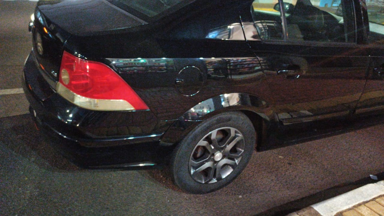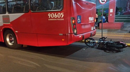Uma moto CG Titan colidiu com a traseira de um Chevrolet Vectra e, em seguida, com a traseira de um ônibus do transporte coletivo urbano. A motociclista, de 44 anos, perdeu o controle da moto após a colisão com o carro.