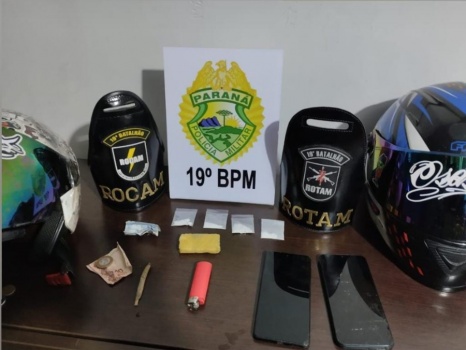 Durante a abordagem, a PM constatou que a placa da moto era falsa e que o casal carregava 4,80 gramas de cocaína, divididos em quatro invólucros, e 21 gramas de maconha, distribuídos em um pacote e um cigarro.