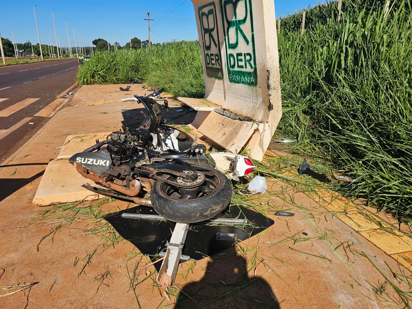 Um grave acidente de trânsito foi registrado no início da manhã desta quinta-feira (10), na rodovia PR-317, no trevo do distrito de Bragantina, entre Toledo e Assis Chateaubriand-PR. Uma motocicleta Suzuki colidiu violentamente contra um ponto de ônibus e duas pessoas ficaram feridas.