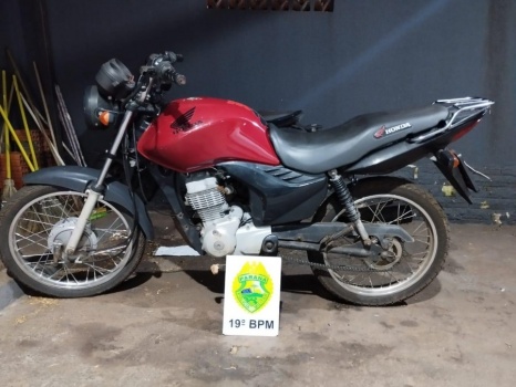 Uma motocicleta com registro de furto foi recuperada pela Polícia Militar (PM) na tarde desta quarta-feira (17), no Jardim São Francisco, em Toledo, após o condutor ignorar uma ordem de parada e fugir da abordagem policial.