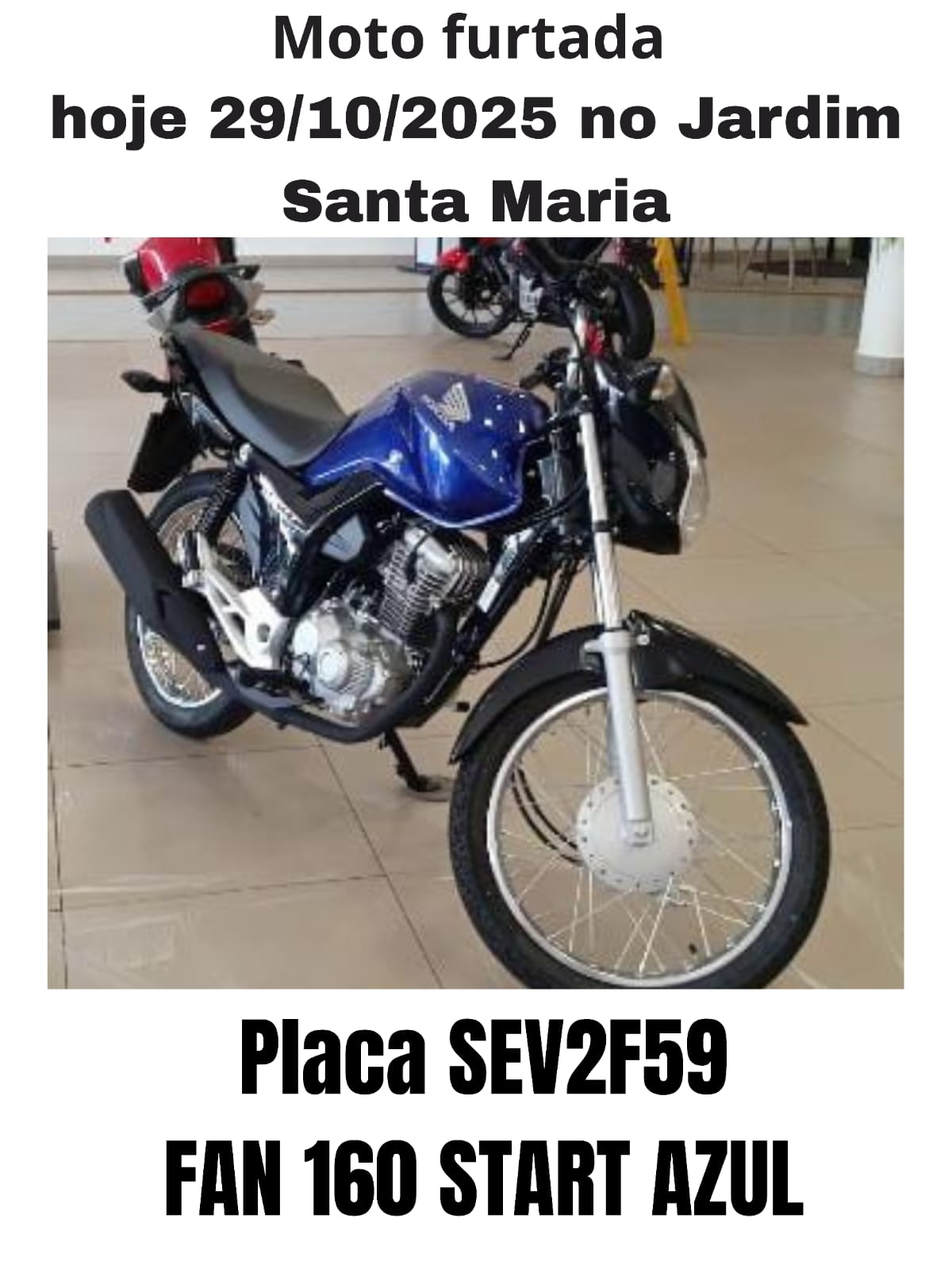 Caso você tenha visto ou possua alguma informação que possa levar ao paradeiro da motocicleta Honda CG Start 160, de cor azul, e placa SEV2F59 basta entrar em contato com à Polícia Militar (PM), via 190, Disque Denúncia do Estado do Paraná, via 181, ou Guarda Municipal (GM), via 153.