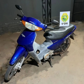 Uma motocicleta Honda Biz, de cor azul, foi recuperada pela Polícia Militar (PM) na noite de terça-feira, 24, no Jardim Europa, em Toledo.