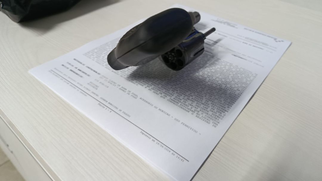 No local, o motociclista foi encontrado desacordado e recebendo os primeiros socorros de uma equipe do Serviço de Atendimento Móvel de Urgência (Samu). Durante os primeiros socorros, a equipe localizou um revólver calibre .38 da marca Taurus na cintura do paciente, sem munições, sendo a arma entregue à Guarda Municipal.