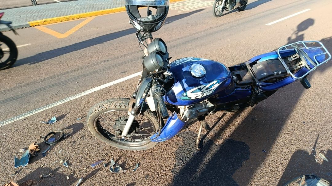 Um motociclista ficou ferido após atingir a traseira de uma picape e ser lançado para dentro da caçamba do veículo, no fim da tarde desta quinta-feira (12), na Avenida Parigot de Souza, no Jardim Porto Alegre, em Toledo.