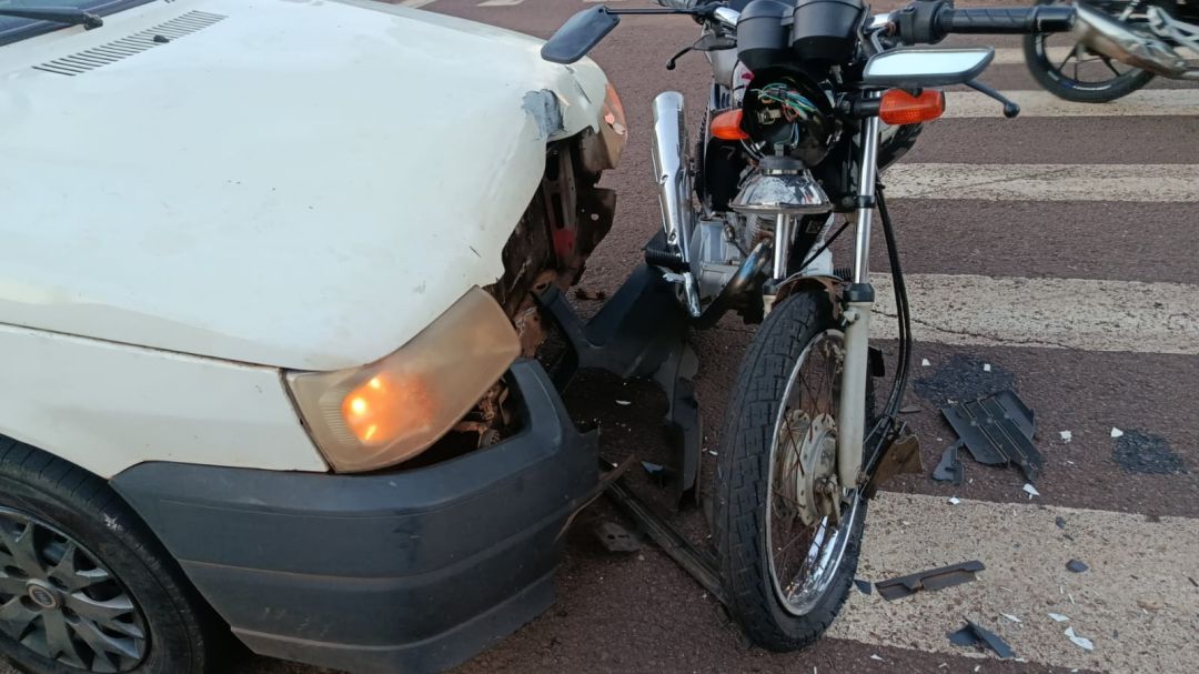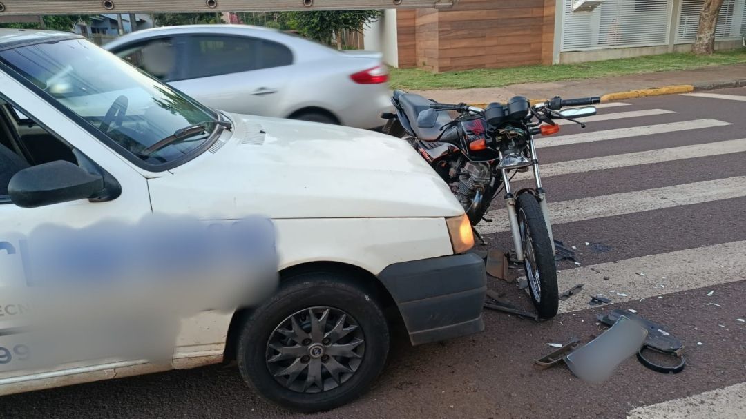 A ocorrência foi registrada por volta das 18h30, no cruzamento das ruas Hanni Claujus e Henrique Basso. A batida envolveu uma motocicleta Honda CG Fan 125 cilindradas e um Fiat Uno.