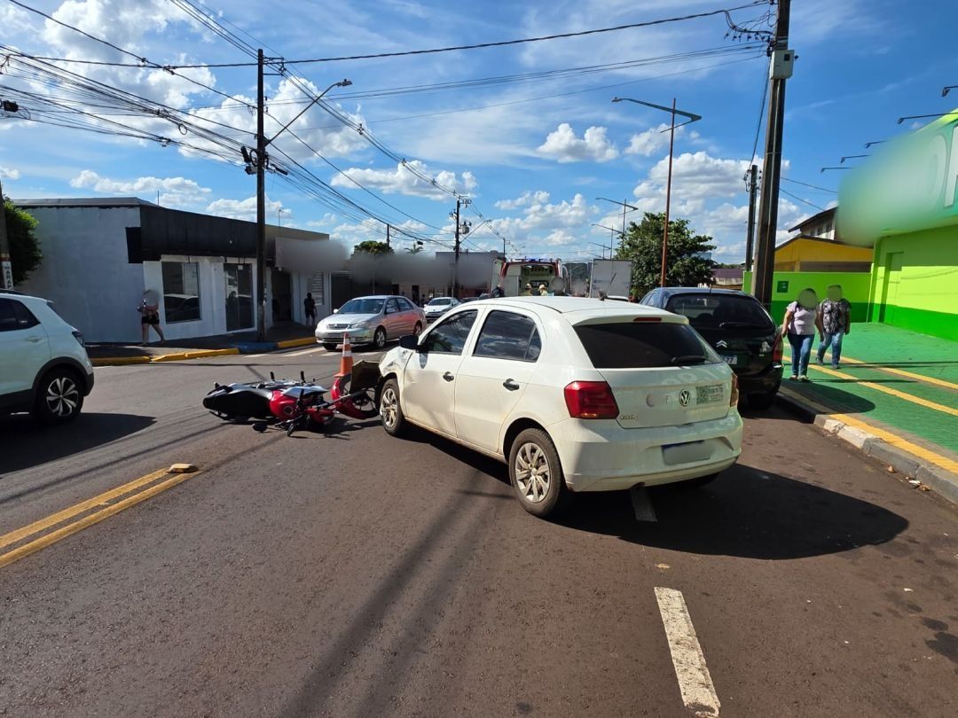 Um acidente de trânsito foi registrado por volta das 15h50 desta quarta-feira (25), na Rua 1º de Maio, nas proximidades do cruzamento com a Rua Capitão Índio Bandeira, na Vila Pioneiro, em Toledo. A colisão envolveu um veículo VW Gol e uma motocicleta Honda CG Titan 160.