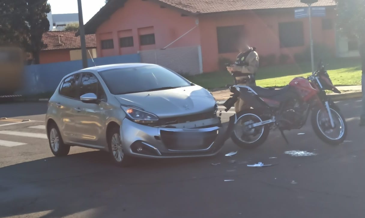 Uma colisão envolvendo um automóvel e uma motocicleta foi registrada por volta das 07h50 desta segunda-feira (12), no cruzamento das ruas 15 de Novembro e Independência, no Jardim La Salle, em Toledo.