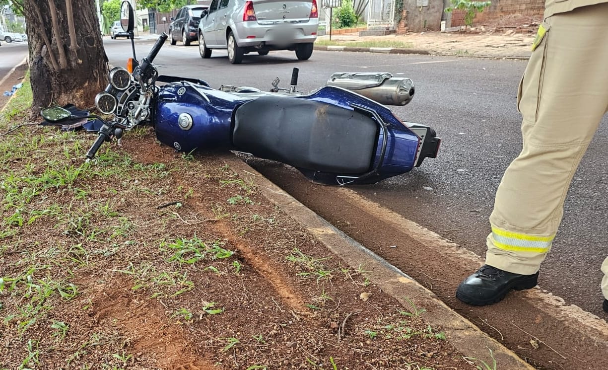Motociclista de 37 anos fratura perna em acidente na Vila Industrial