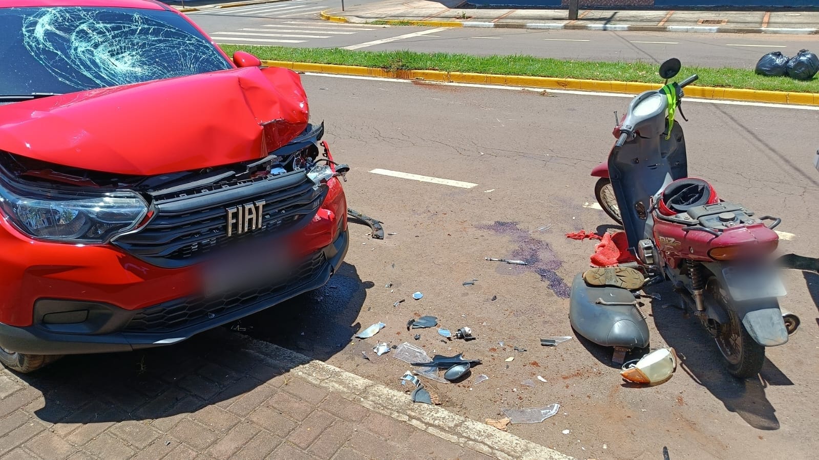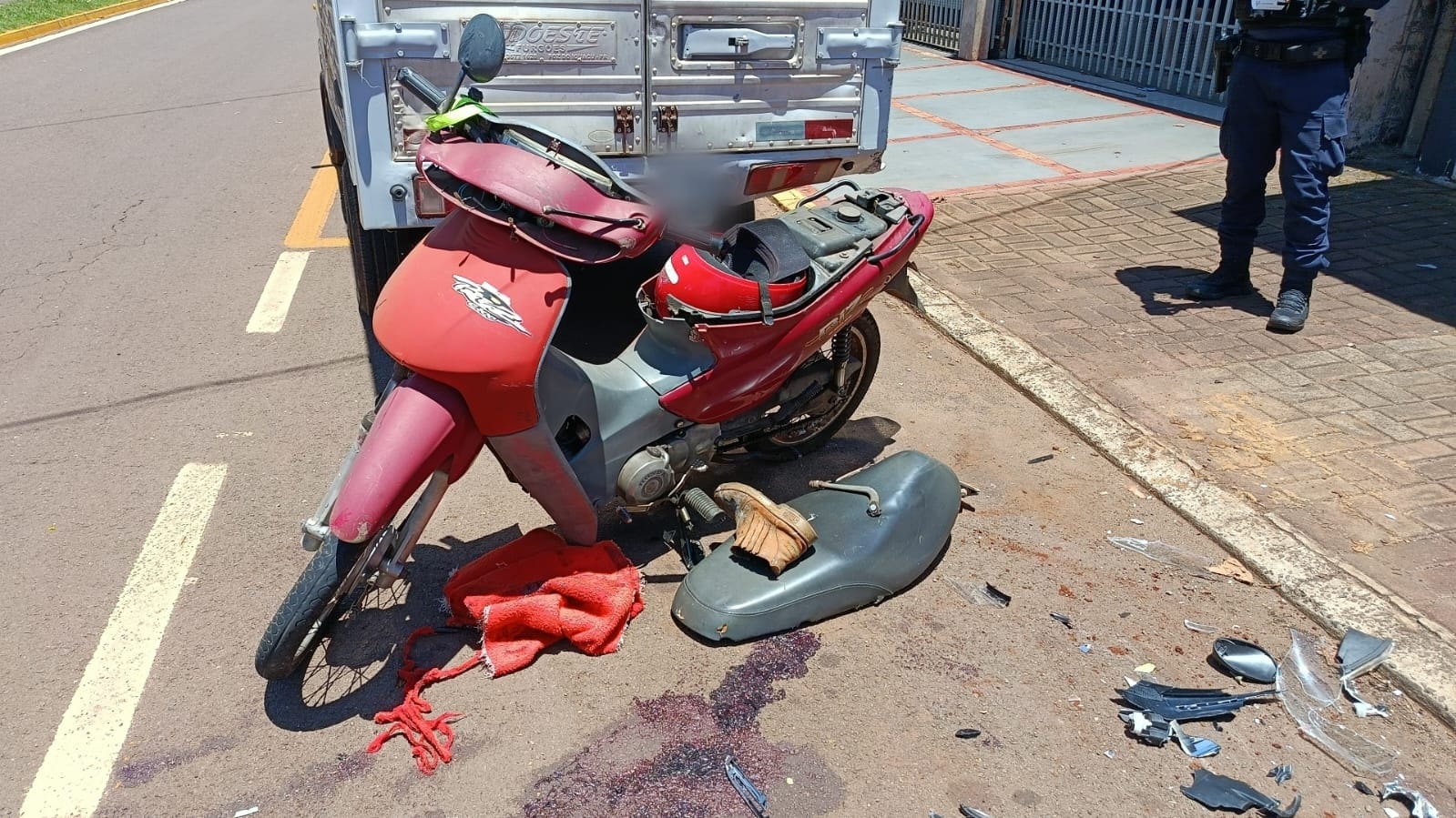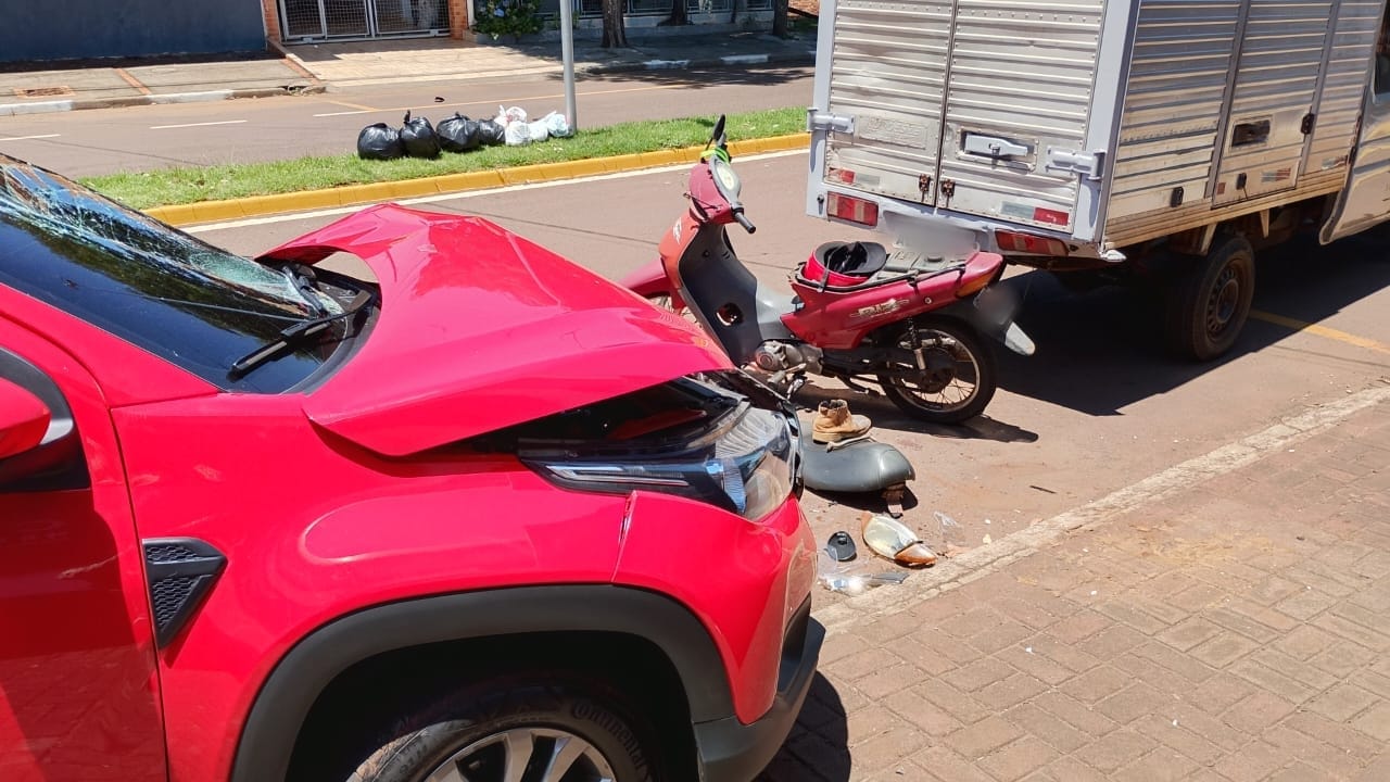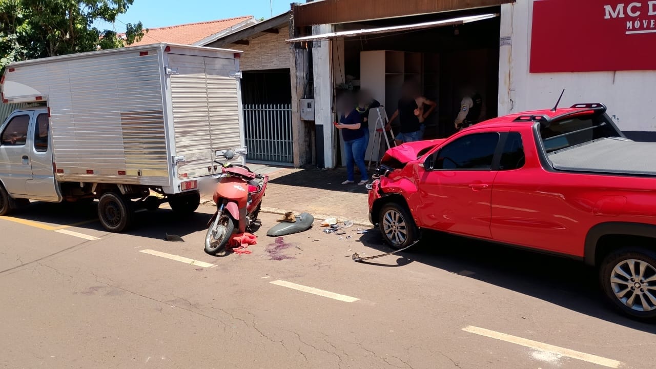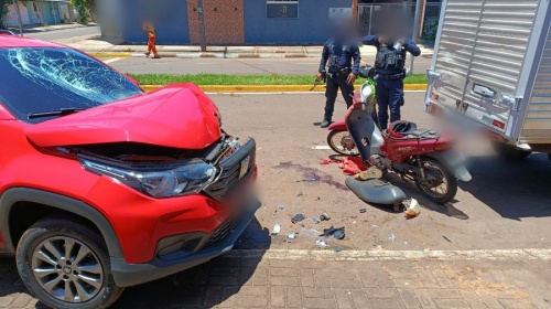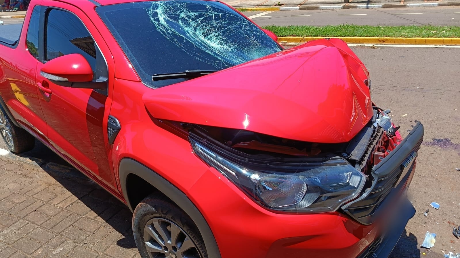 Motociclista é lançado contra para-brisa em colisão com picape no Jardim Coopagro