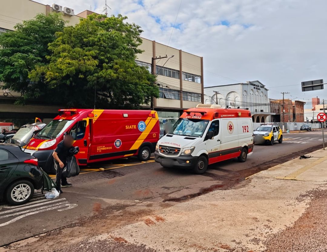 Um motociclista de 44 anos ficou gravemente ferido após um acidente registrado no início da manhã desta quinta-feira (16), no cruzamento das ruas Rui Barbosa e Raimundo Leonardi, ao lado do Terminal Rodoviário de Toledo.