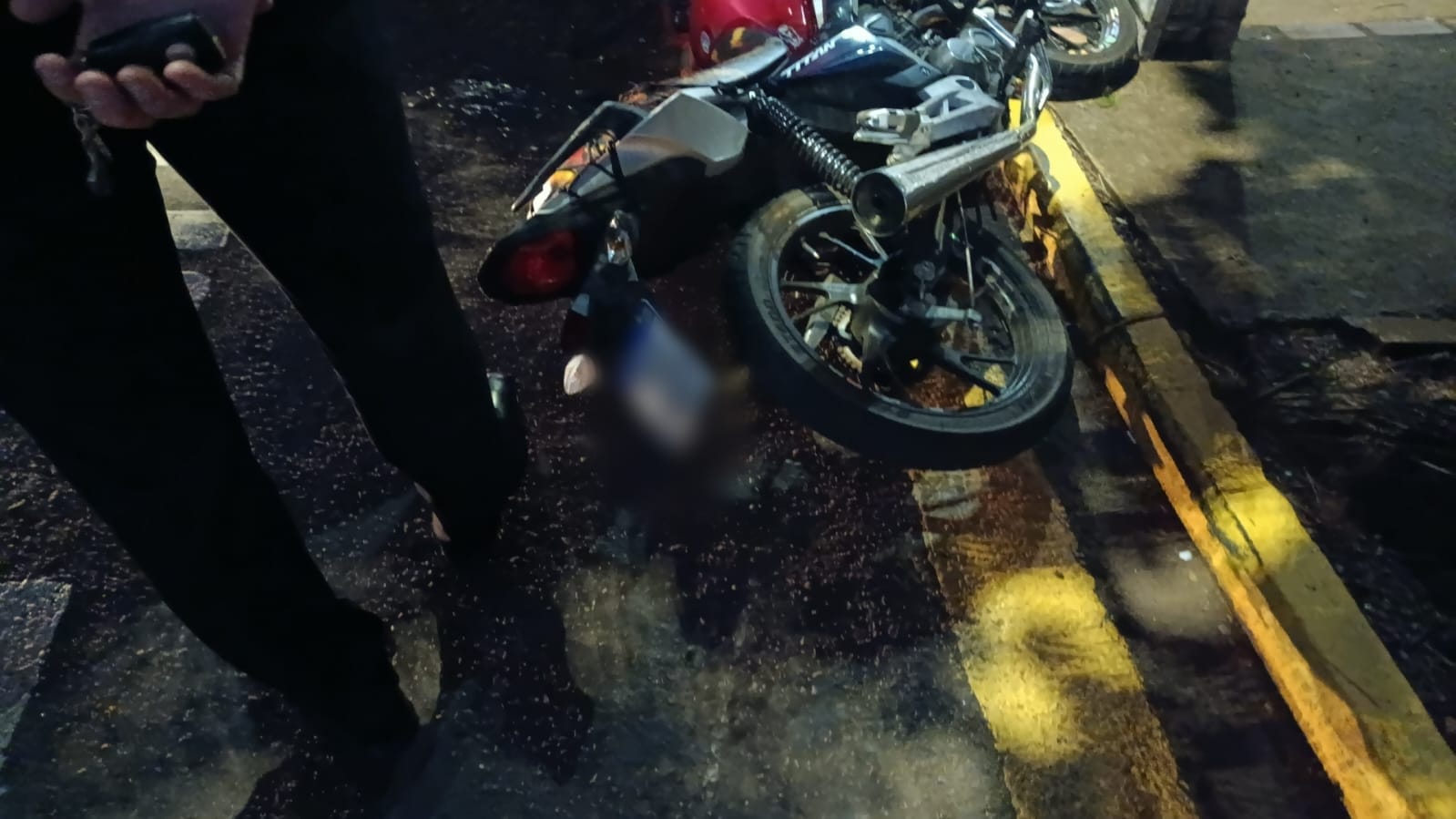 Motociclista empina moto, tenta fugir da PM e se acidenta no Centro de Toledo