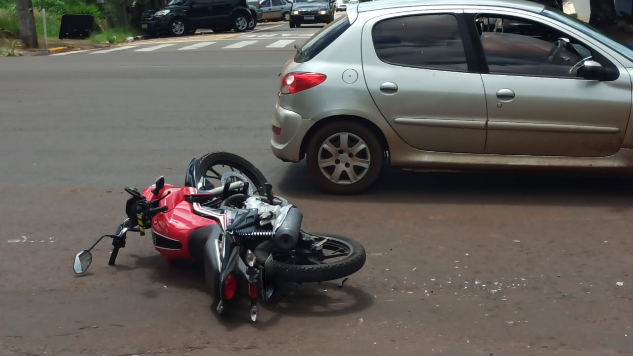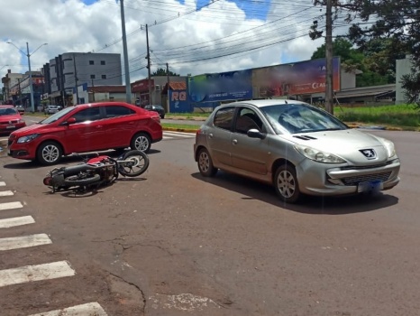 Um acidente de trânsito envolvendo uma motocicleta e um automóvel ocorreu na manhã deste sábado (09), no Centro de Toledo. Uma jovem ficou ferida.