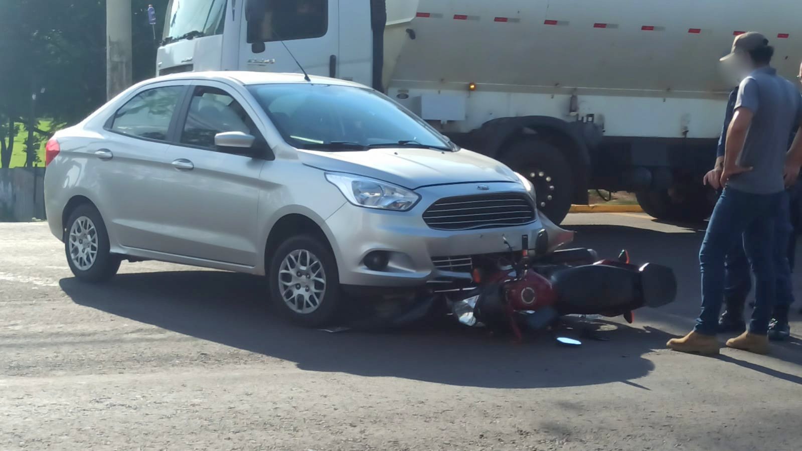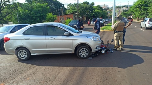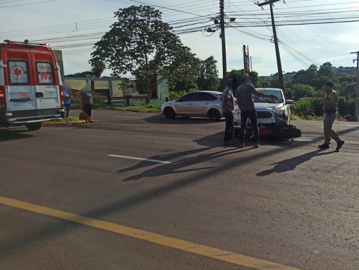 Uma colisão entre um automóvel e uma motocicleta deixou uma mulher ferida na manhã desta quarta-feira, 6, em Toledo. O acidente ocorreu por volta das 7h15, na esquina da Avenida Senador Atílio Fontana com a Rua Paulista.