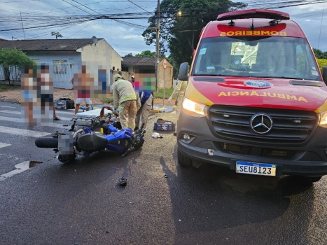 Um acidente foi registrado no início da noite de sábado, 08, na Vila Industrial, em Toledo. Um motociclista teve ferimentos moderados.
