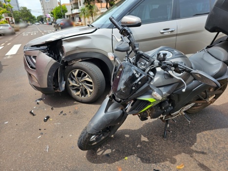 Um acidente envolvendo uma motocicleta Yamaha Fazer e um carro Hyundai Creta foi registrado na manhã desta quinta-feira (28), no Centro de Toledo. A colisão ocorreu por volta das 11h00, no cruzamento das ruas Souza Naves e Almirante Barroso.