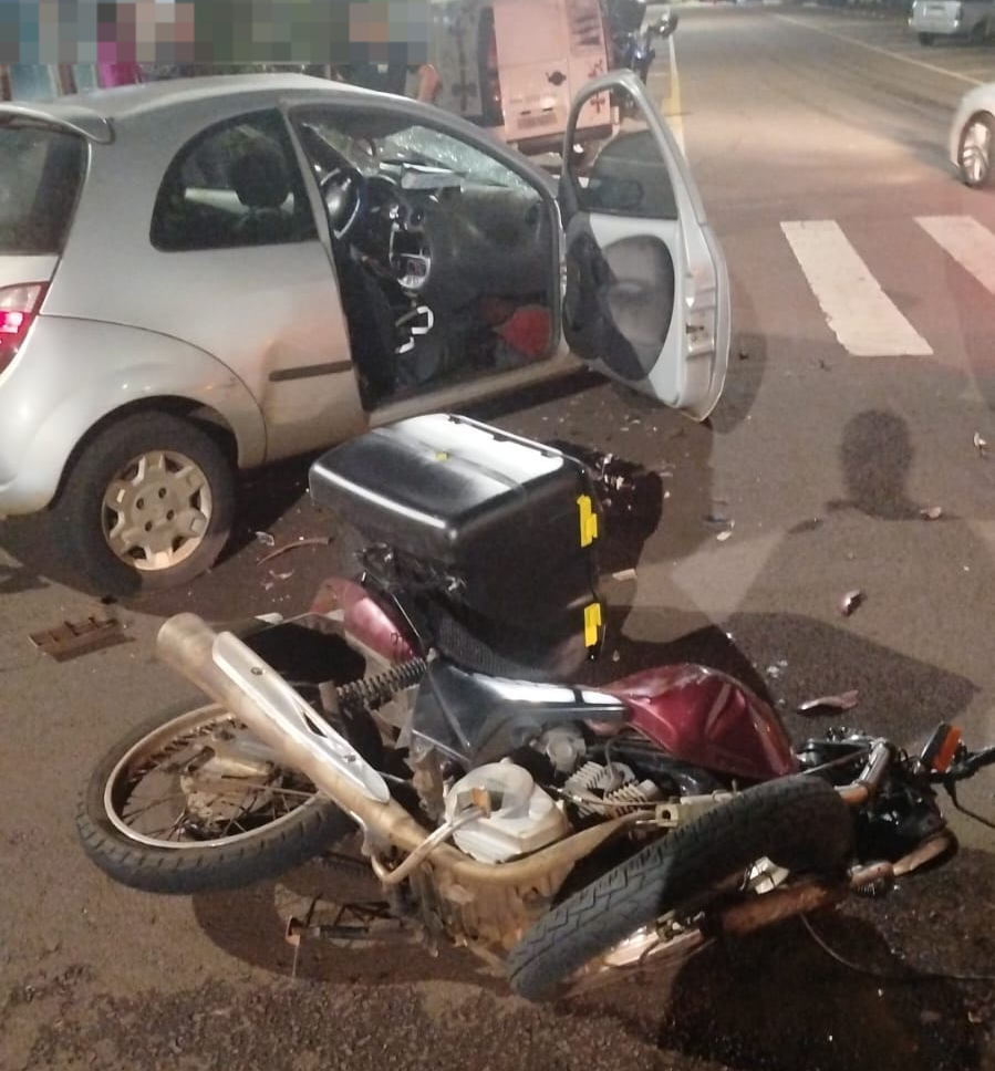 Um motociclista ficou ferido após um acidente envolvendo um carro e uma motocicleta na noite de sábado (08), em Toledo. A colisão aconteceu no cruzamento da Rua Santos Dumont com a Rua 15 de Novembro, no Centro da cidade.