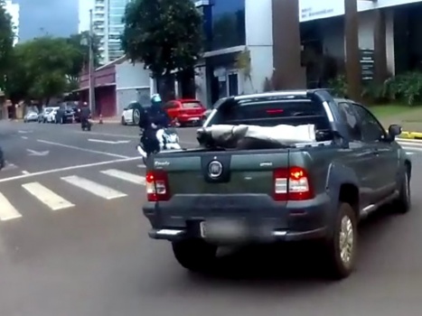 No vídeo é possível ver uma caminhonete Fiat Strada trafegando pela Rua 15 de Novembro, quando o condutor para no cruzamento e em seguida avança para realizar uma conversão à esquerda em direção a Rua Dom Pedro II. A motocicleta seguia pela Rua Dom Pedro II e com o avanço da Fiat Strada, não conseguiu parar a tempo, o que gerou a forte colisão.