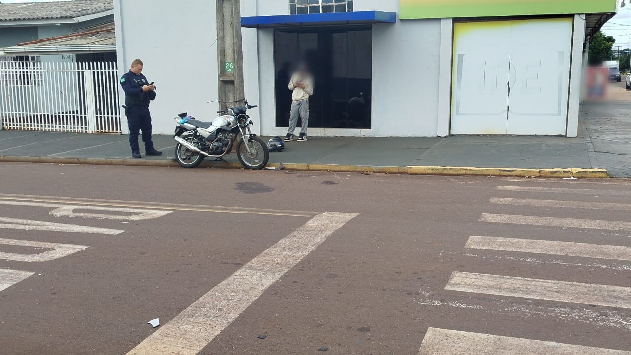 Um jovem motociclista ficou ferido em um acidente de trânsito registrado no início da tarde desta terça-feira (20), no cruzamento da Avenida Roberto Fachini com a Rua Maria José Nogueira, no Jardim Coopagro, em Toledo. A colisão envolveu uma motocicleta Yamaha YBR, de cor prata e um veículo Honda Fit, também de cor prata.