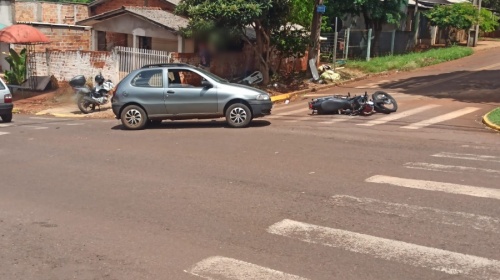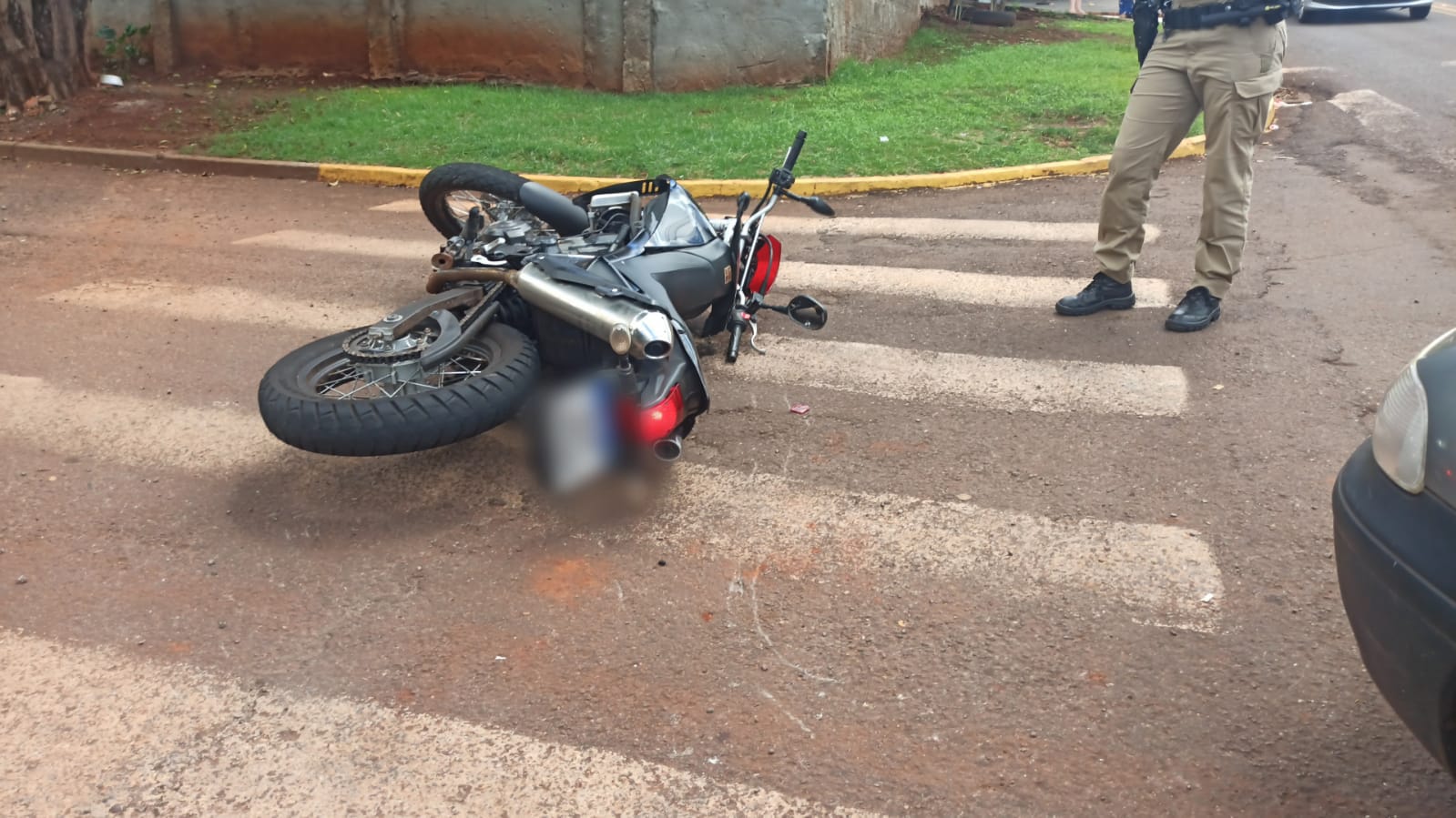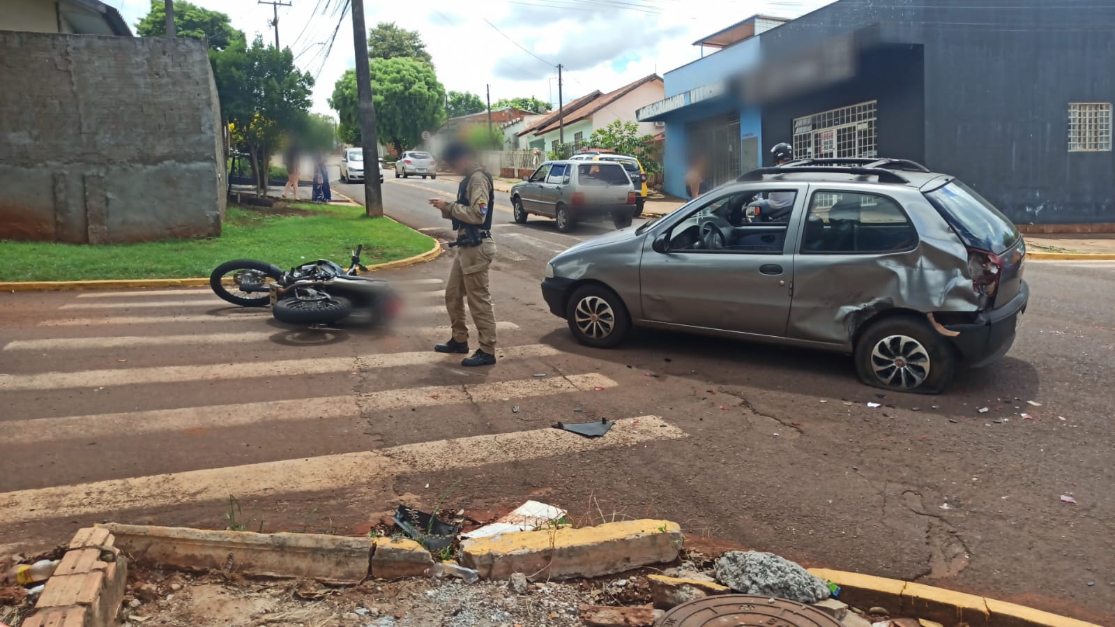 Um motociclista de 24 anos ficou ferido em um acidente de trânsito registrado por volta das 13h30 desta quinta-feira (13), no cruzamento das ruas Emma Hubner e Waldemar Turatti, no Jardim Santa Clara IV. A colisão envolveu um veículo Fiat Palio e uma motocicleta Yamaha XT 600.