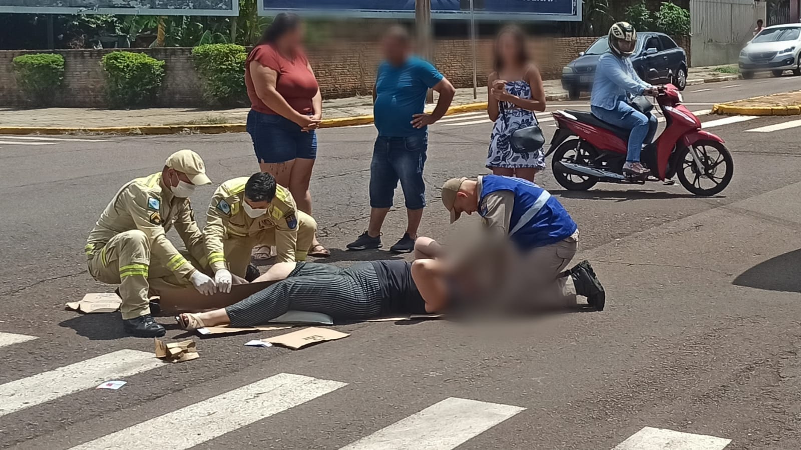 Uma equipe do Corpo de Bombeiros foi acionada ao local e prestou os primeiros socorros à motociclista. Ela teve uma fratura na perna direita e foi encaminhada para maiores cuidados na Unidade de Pronto Atendimento (UPA) do município.