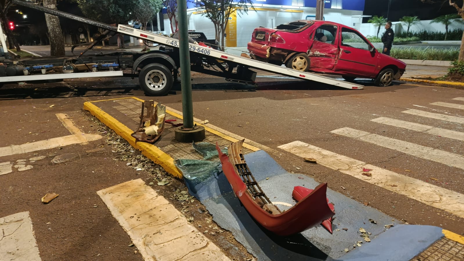 Equipes da Guarda Municipal (GM) foram acionadas para atender a ocorrência. Um guincho realizou a remoção do veículo, que foi levado ao pátio da GM. Apesar da destruição, não houve registro de feridos.