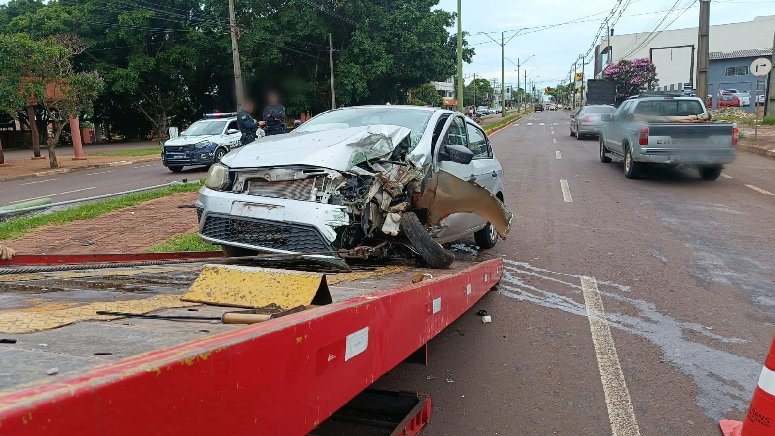 Após a batida, o condutor deixou o local antes da chegada das autoridades. Um guincho particular foi acionado para remover o carro, que foi levado ao Pátio da Guarda Municipal.
