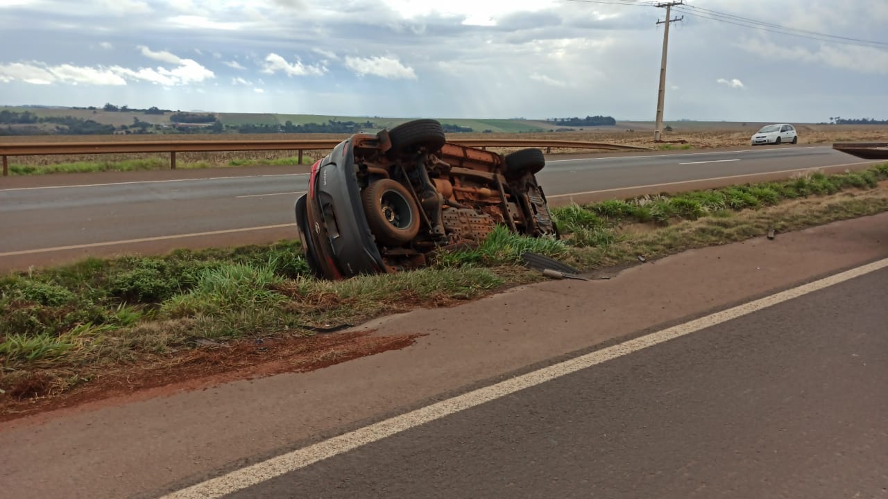 Motorista sofre mal súbito e tomba Hilux na BR-163, próximo a Toledo