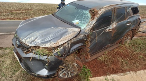 Uma Toyota Hilux SW4 com placas do Paraguai tombou na rodovia BR-163, próximo ao distrito de Vila Ipiranga, em Toledo, na manhã desta sexta-feira (09).