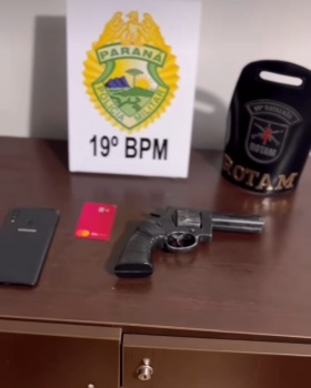 Na abordagem, os policiais encontraram uma arma de fogo escondida na cintura do homem e o celular da vítima em seu bolso. O indivíduo foi preso em flagrante e levado para a Delegacia, onde foram realizados os procedimentos cabíveis.