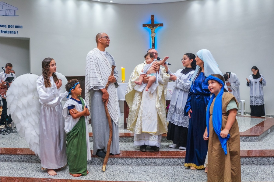 Um dos momentos mais emocionantes da celebração foi a representação da Sagrada Família, que trouxe ainda mais significado à Liturgia, lembrando o nascimento de Jesus Cristo, em Belém.