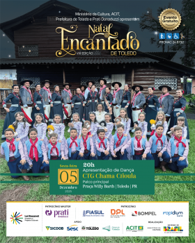 O Centro de Tradições Gaúchas (CTG) Chama Crioula, com 30 anos de história, será atração na sexta-feira, dia 5 de dezembro na VIII Edição do Natal Encantado de Toledo, na Praça Willy Barth.
