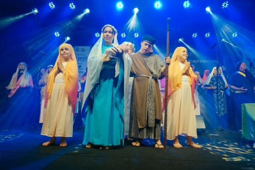 A encenação colocou em cena a tradicional história do nascimento do menino Jesus, da anunciação do Anjo à Maria e a caminhada dos Reis Magos guiados pela luz de uma estrela, culminando com o nascimento do filho de Deus.