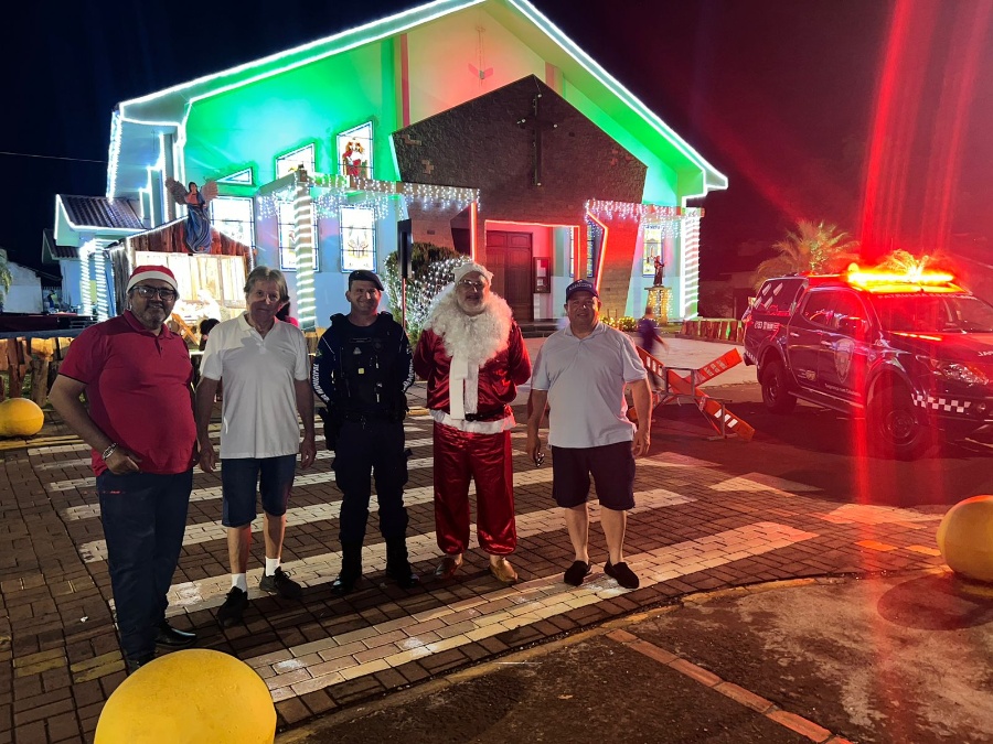 A chegada do Papai Noel foi um dos pontos altos da noite, trazendo muita alegria, especialmente para as crianças, que correram atrás do buggy do bom velhinho. O comboio de Natal, acompanhado pela Guarda Municipal (GM) de Toledo, deu um toque especial à chegada do Papai Noel, que foi escoltado pelas autoridades. Além disso, as crianças tiveram a oportunidade de conhecer e tirar fotos dentro da viatura da Guarda Municipal, uma verdadeira atração para os pequenos.