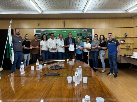 Nesta quarta-feira (23), foi assinada pelo prefeito Mario Costenaro e pelo secretário de Esportes e Lazer (Smel), Jozimar Polasso, a lei que institui o Fundo Municipal do Esporte de Toledo - FME, em ato com a presença do vice-prefeito Lucio De Marchi e vereadores. A Lei Nº 2.903, de 23 de abril de 2025 foi publicada no Órgão Oficial Eletrônico do Município de Toledo, edição 4.321 - extraordinária, e institui também o Sistema de Esportes e Lazer de Toledo - Selto, e o Programa de Apoio ao Lazer e Transformação pelo Esporte de Toledo - Proalto.