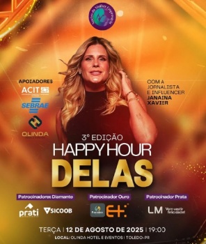 Proporcionar um espaço de conexão, fortalecimento e desenvolvimento para mulheres que empreendem é o principal objetivo do Happy Hour Delas. Promovido pelo Núcleo da Mulher Empresária de Toledo da Associação Comercial e Empresarial (ACIT), a terceira edição do evento acontece nesta terça-feira (12), às 19h, no Olinda Hotel e Eventos de Toledo.