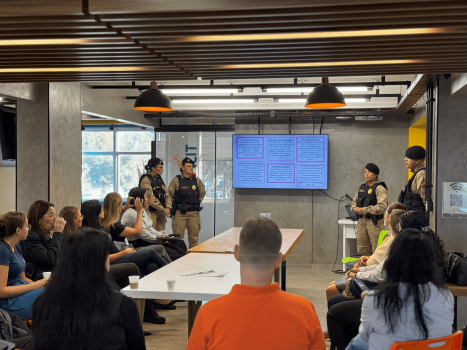A equipe da Polícia Militar destacou a importância da empatia, do acolhimento e da escuta ativa por parte dos profissionais de Recursos Humanos, que muitas vezes são os primeiros a perceber sinais de que algo está errado.