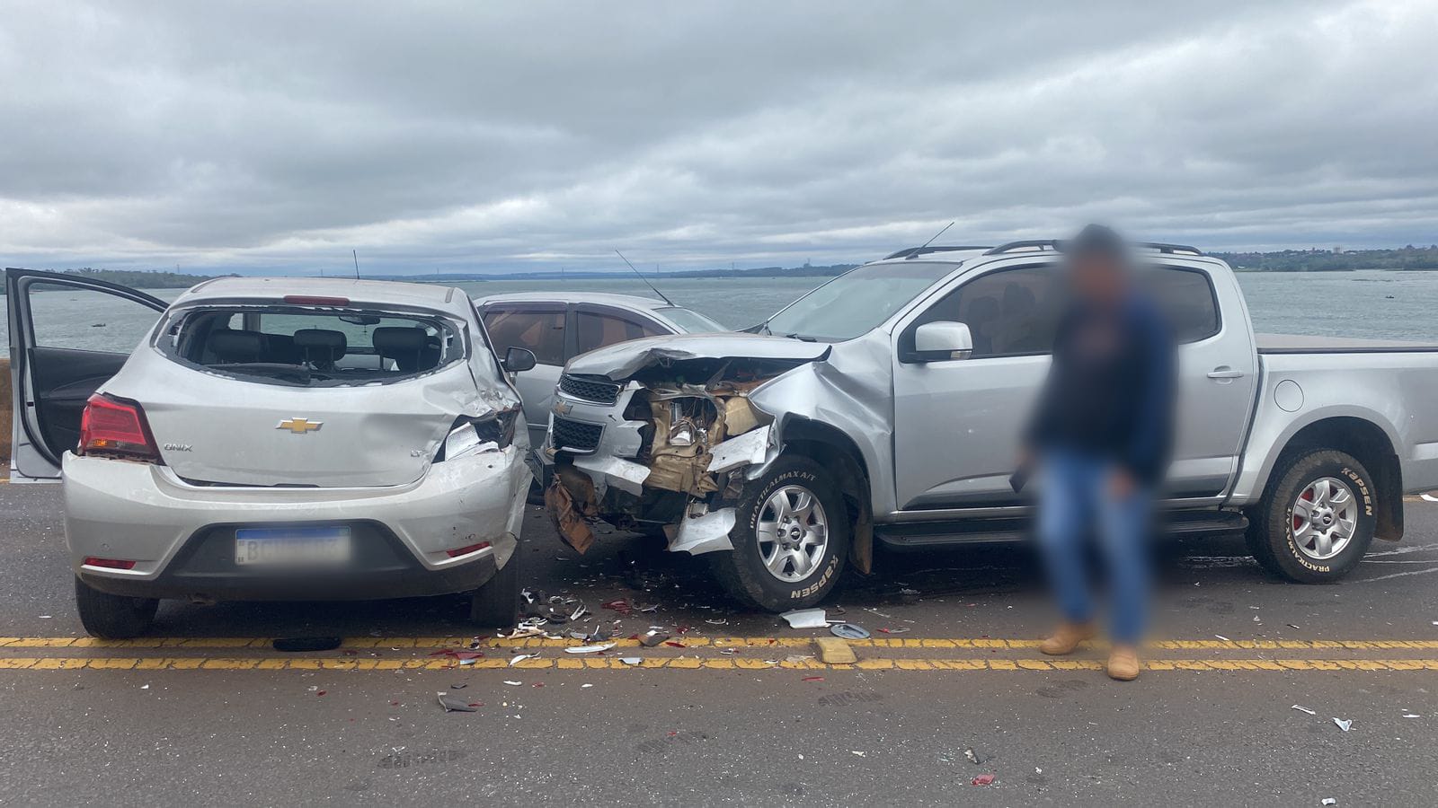Com o impacto, o Fiesta foi lançado para a pista contrária e colidiu com o Onix e com a S10, que seguiam em direção ao Paraná. A batida deixou os veículos sobre a pista, deixando o trânsito lento.