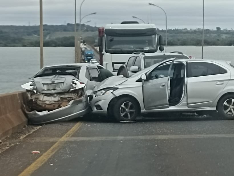 Um acidente de trânsito foi registrado na tarde desta quinta-feira (08), sobre a Ponte Ayrton Senna, que liga Guaíra-PR à Mundo Novo-MS.